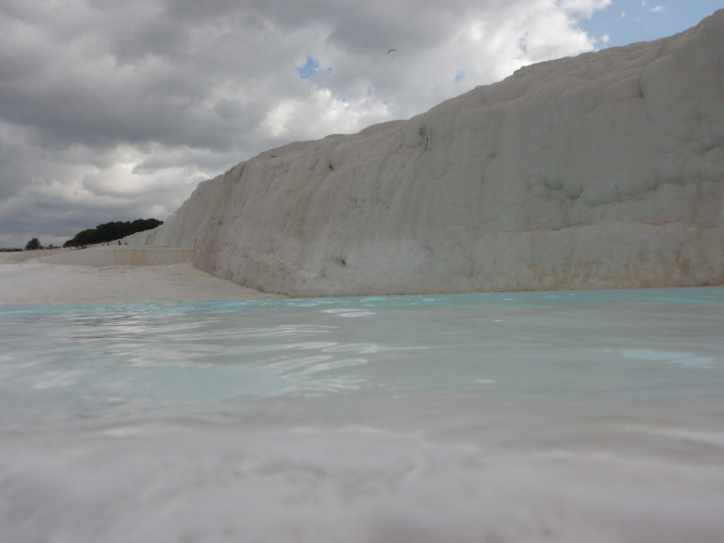 写真はトルコのパムッカレです。水面からレンズをだして撮影しているんですけど、水を気にせずに撮れるのが一番の利点ですね。僕はNikon AW130を使ってて特徴は30m防水なんですけど、一般的な使い方だと不要です。たとえば、ダイビングを防水ハウジング無しでしたいならこのカメラ一択です。因みに、ダイビング仲間の話だと水中はOLIMPUSが綺麗な写真が撮れると評判でした。旅使いだと問題なしですが、30m近くまで潜るなら水中ハウジングが必要なので要注意です。