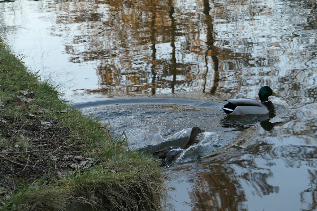 鴨が水面に飛び込んだ後です 水を切っている瞬間が綺麗