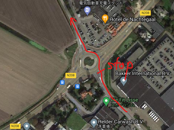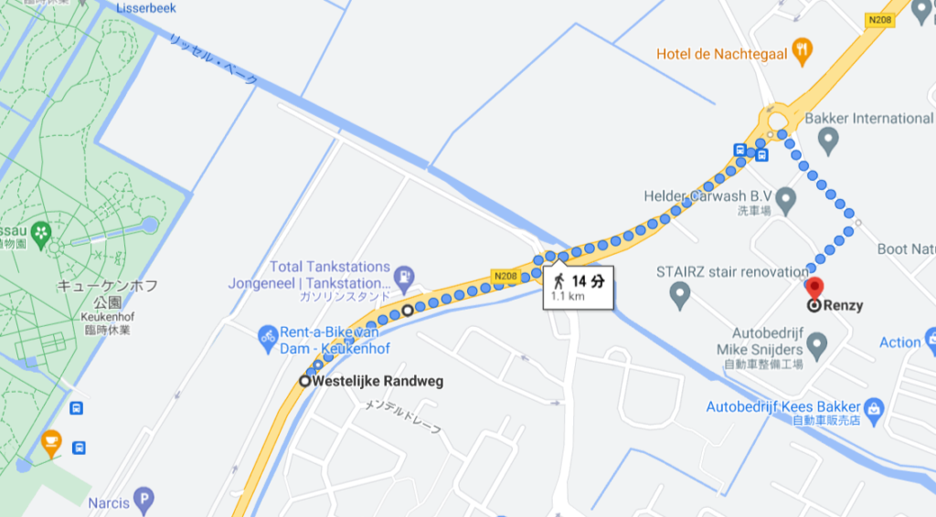 キューケンホフ公園から1kmほどなので、ゆっくり歩いて20分もかからないでしょう