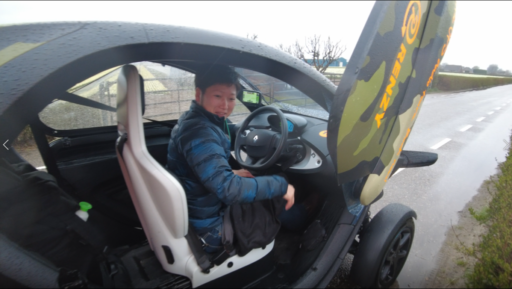ツアーではRenault Twizy(ルノー トゥイジー)という車を使いますが、