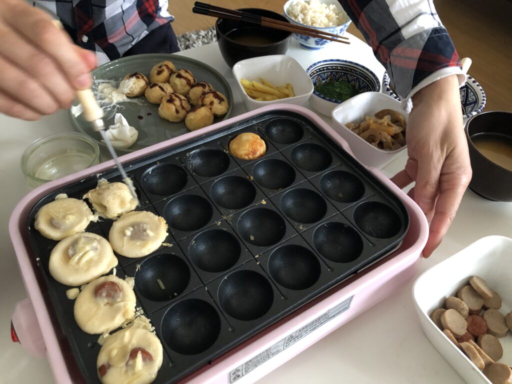 日本から持ってきたタコ焼きプレートで創作タコ焼き