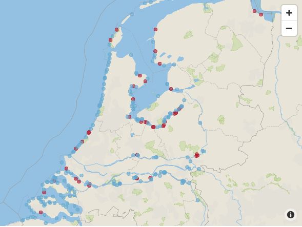 みんな大好きスケベニンゲンビーチもバッチリ赤ですね