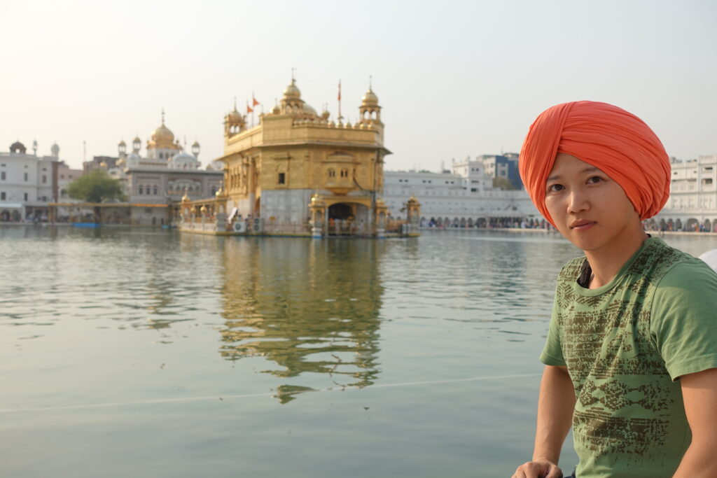 こーいう事をするとメチャクチャ周りから見られます。「おい、あのアジア人は一体なんなんだ?」とか思われただろーなぁ(笑) けどシーク教はオープンな宗教なのでこんな感じで観光客にもターバン売ってくれるし巻いてくれます。背景にあるのは黄金寺院。インドパンジャーブ州はターバンで有名なシーク教徒の総本山で有名で、またパキスタンとの国境が観光名所になってますね。この地域がインドとは思えないくらい潤っててたぶんインドの中で一番綺麗な街だわ。しかもインド人は皆親切で良い人ばっかりだったってのもインドっぽくないんだけど、パーソナルスペースが完全にインドだから列に並んでると足の裏をこすってくるくらい距離が近い(笑)