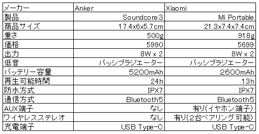 XiaomiはAnkerより2倍以上重いという事はスピーカーの質が圧倒的に違うと言えます