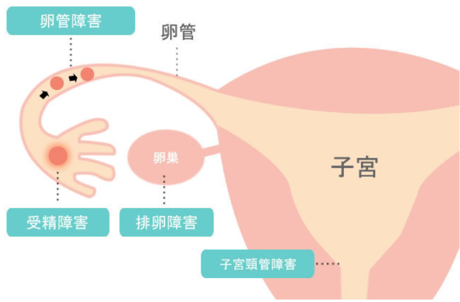 この卵管がなんらかの原因で詰まっていると卵管采(手の様なイラスト部)で卵子を受け取ったのち、精子が卵管を受精場所まで行けないため妊娠出来ません