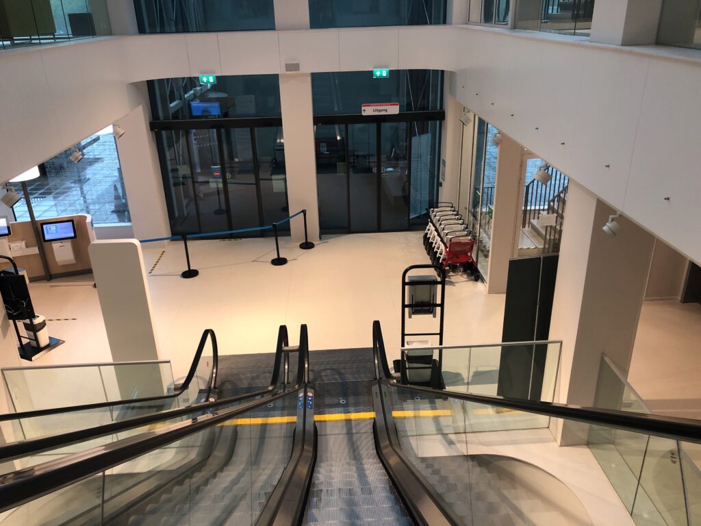 回転ドア先の踊り場から。右側扉から入り直ぐ受付