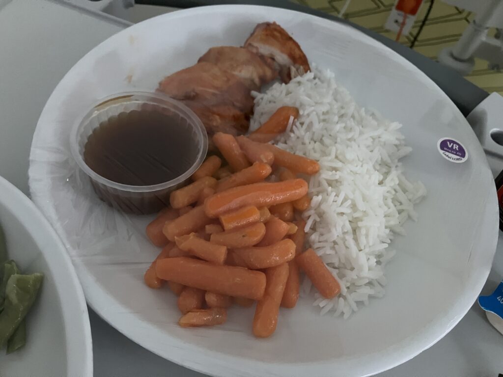 夕食:鳥の甘辛っぽい味、人参、ご飯