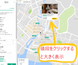 価格をクリックしホテルを順番に確認していく。
