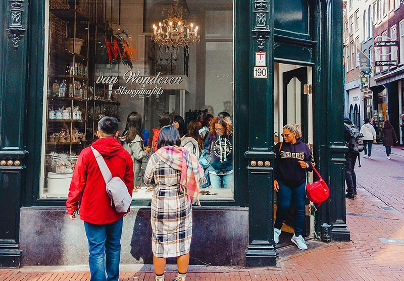 アムステルダム近辺だと、アルベルト・カイブ通りにあるOriginal Stroopwafelsか、トッピングが豊富なvan Wonderen Stoopwafesが良いと思います。