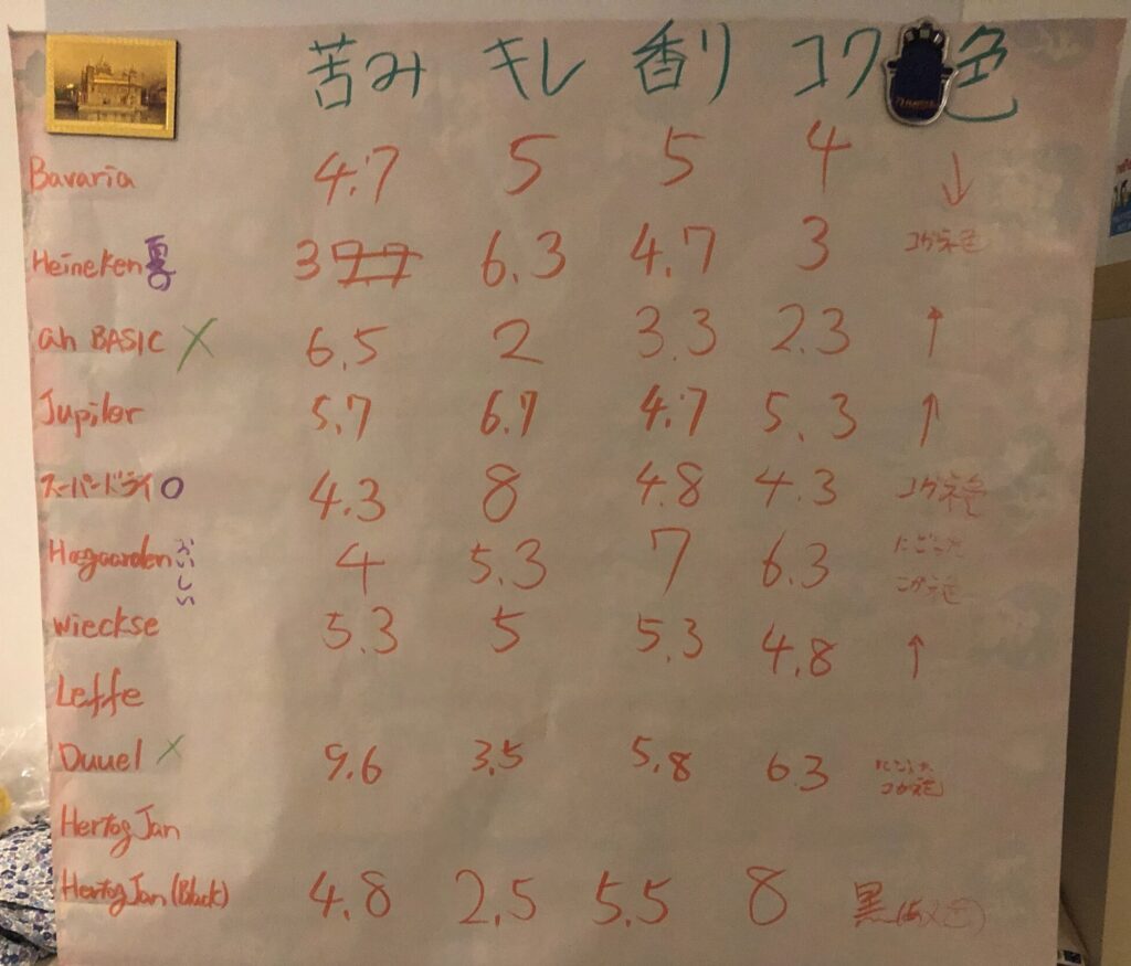 今回準備したビール一覧はこちらですが