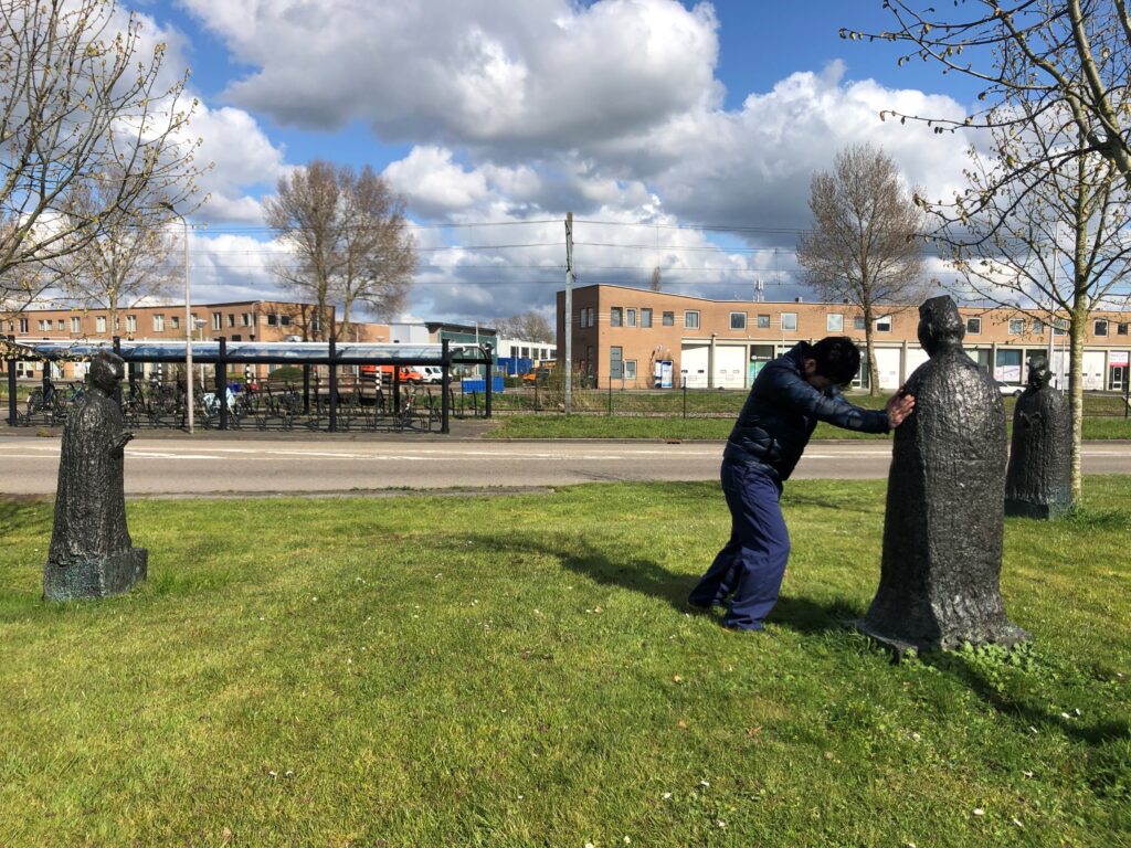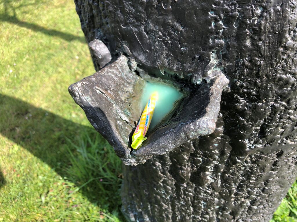 美術館前でも公園でもなく 芝生の上に像が3体…なぞ