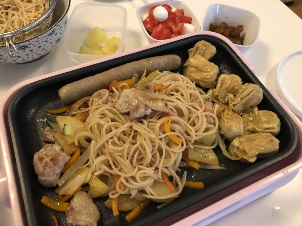 約3000円で焼きそば、焼肉、タコ焼き、すき焼きなど何でも作れますが、こっちのホットプレートは肉を焼くのに適している鉄板スタイルがほとんどです
