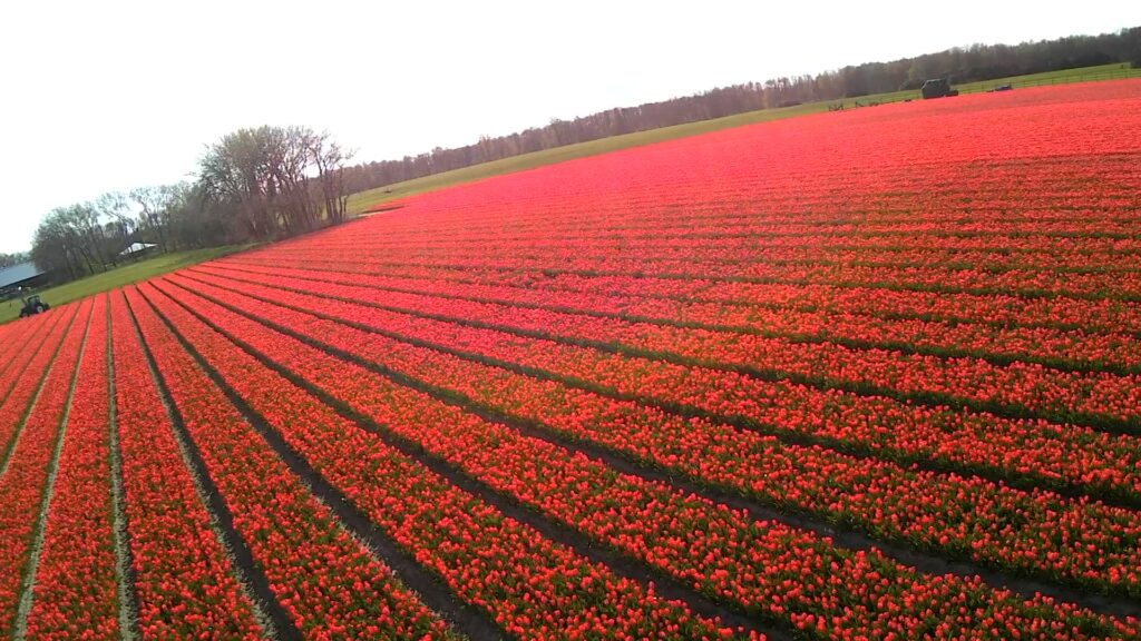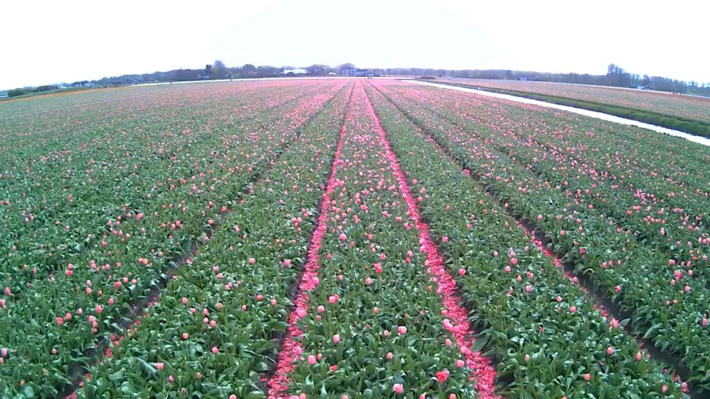 チューリップ畑をドローン撮影