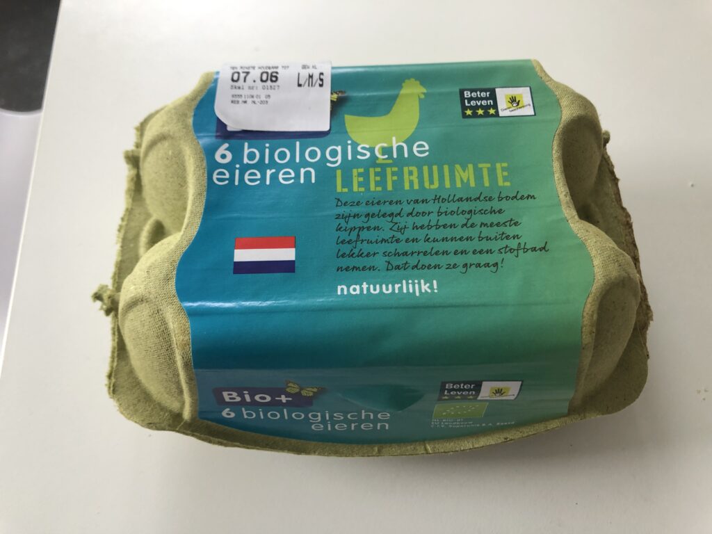 6個入りで約€2のBIOで生産された最高級品質の卵です