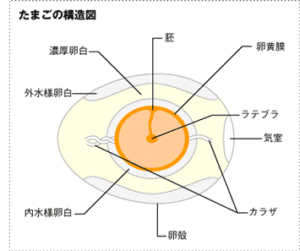 黄身はカラザと白身が支えて真中にあるんですけど、