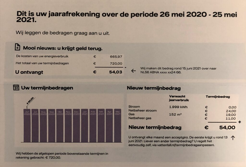 んで、その差額€54.03が支払いすぎになってるので、来月僕の口座にその金額がキャッシュバックされます