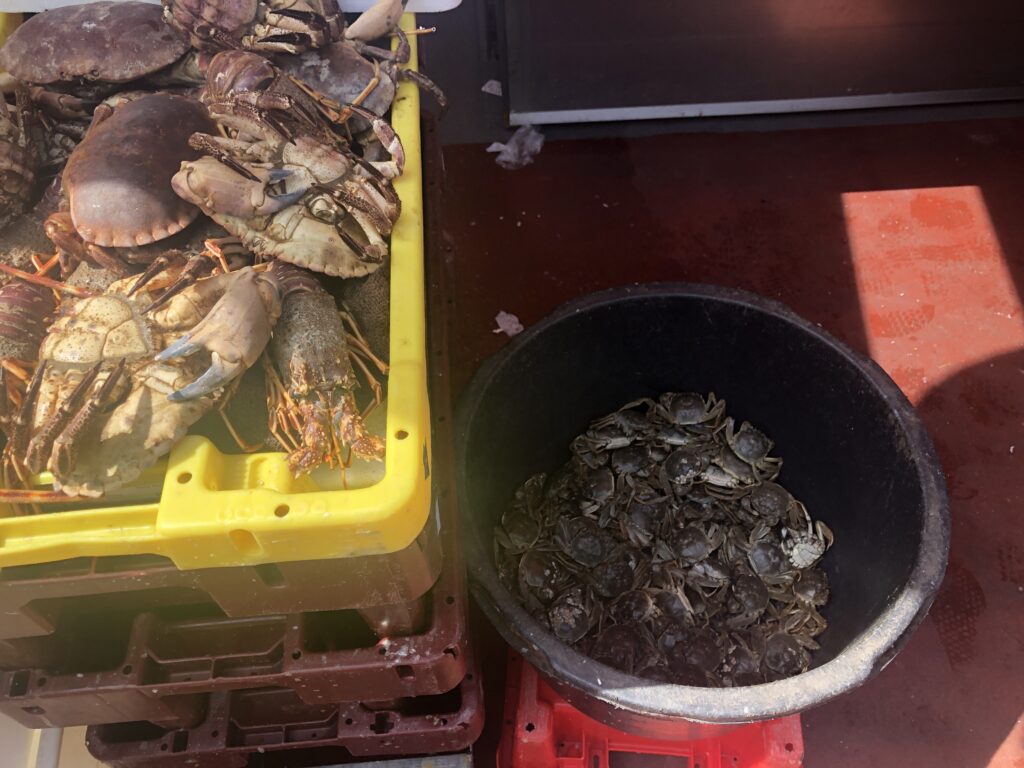 左の大きなカニはRock Crabで右の小さなカニがChinese Mitten Crab