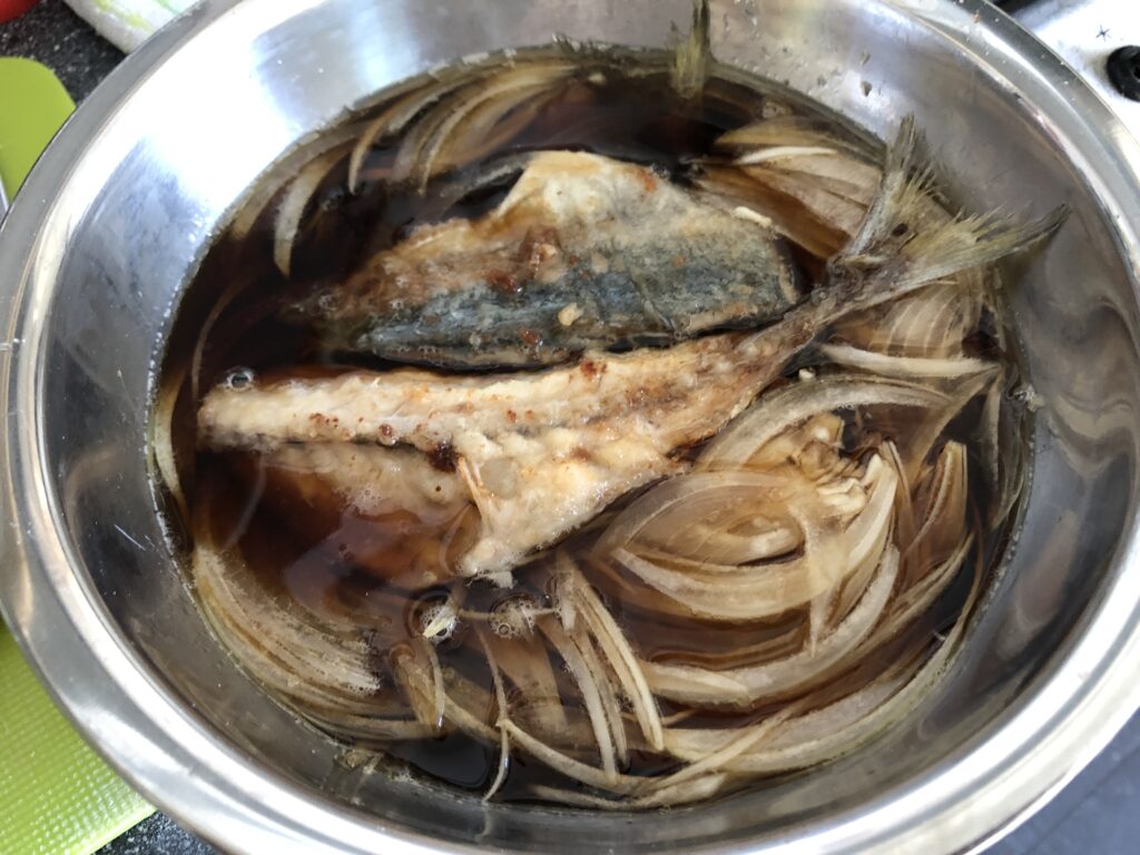 1キロ€5で買ってきたアジを全部2枚に開いて5匹を南蛮漬けにしています