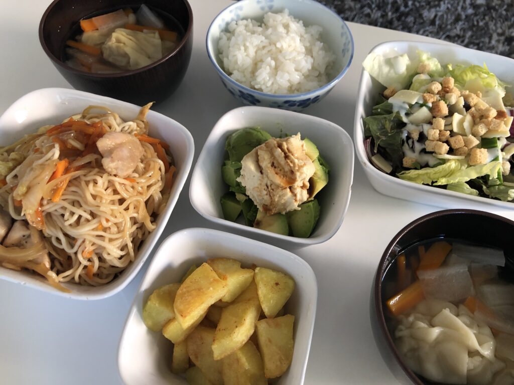 アボカドにはフムスと醤油をかけました。ニンニクの香りが食欲そそる