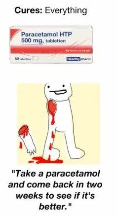 Dutch doctors って検索すると、予測変換でParacetamol memeってパラセタモール ミームって出るくらいだから、とりあえずパラセタモールしか処方しないってネット民が認めてるわけ