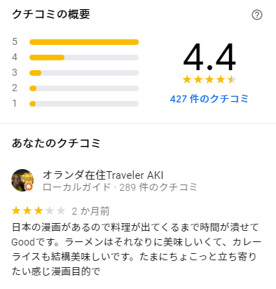 本当はラーメン専門家とか観光ガイドとかが積極的にアピールしてくれたら分かり易いんですけど、上に書いたとおり、ローカルガイドへの恩恵が少ないのでインフルエンサーは参入しませんし、インフルエンサーはビジネスに繋がり易いInstagramで紹介活動をするので今後もこの流れが続くでしょう