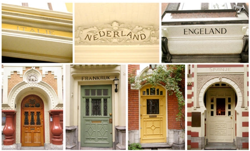 高級住宅街にある閑静な通りの中ほどまで歩みを進めると、オランダの雰囲気とは全然違う異国情緒あふれる7軒の家が出てきます。「7カ国の家」は1894年に、オランダ人建築家チェールト・カウパースが建設して、ヨーロッパ各国の潮流を再現した場所です