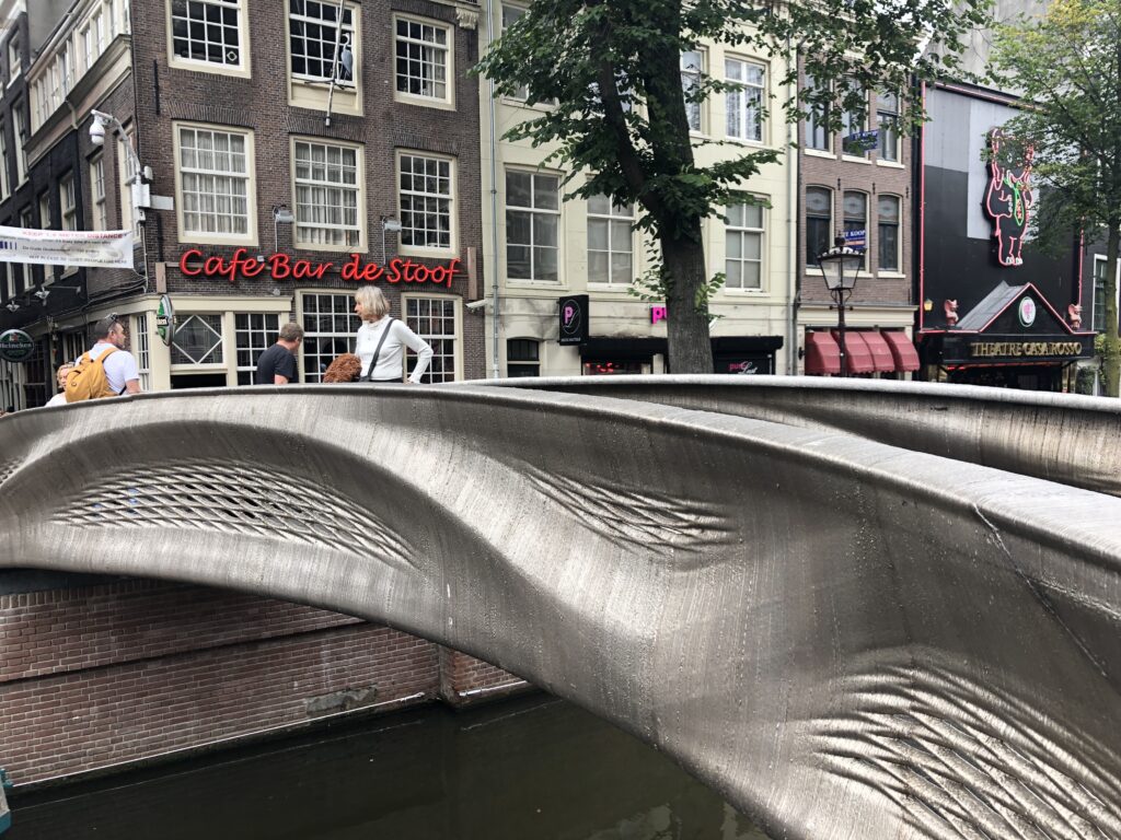 金属3Dプリント技術で作られた橋でアムステルダムの新名所です。なんでRed light地区に作ったのは不明なんですけど、3Dプリントと言ってもプラスチックを射出するあれじゃなくて、粉上の金属粉をレーザー熱で溶融させて積層にしているはず。
