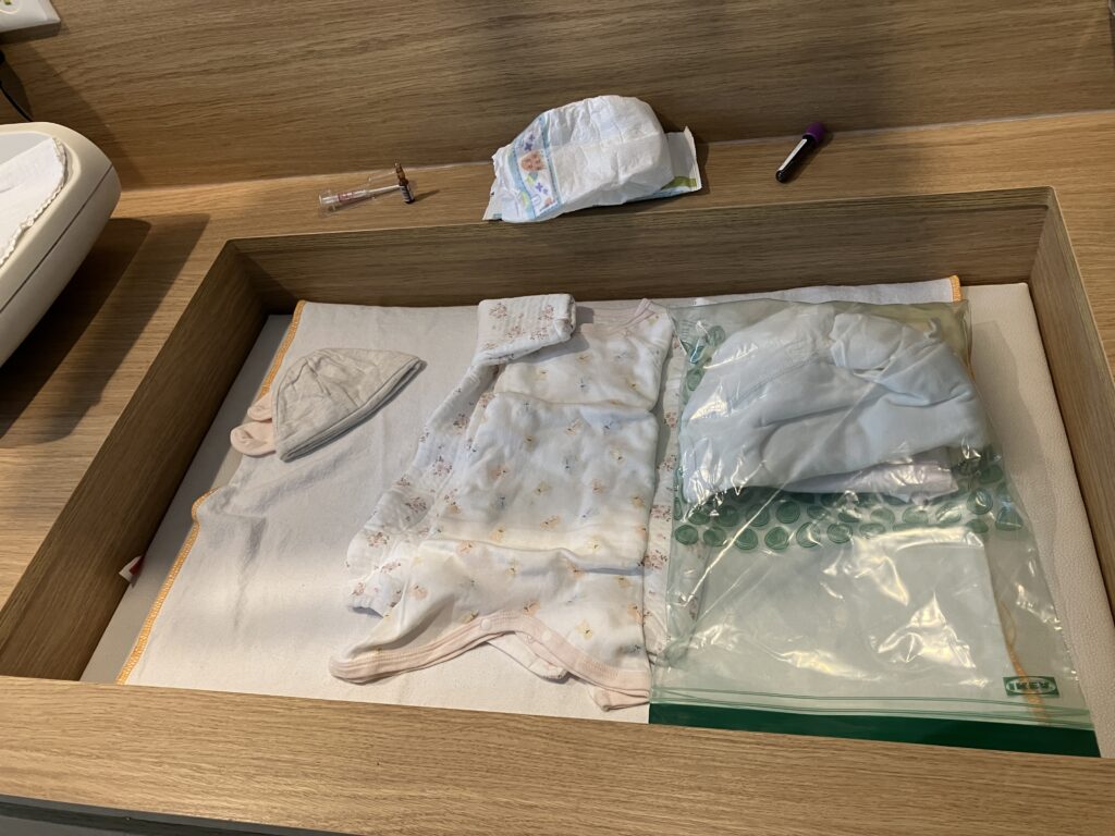 おむつは病院側から貰えます。この台は服を着せる時にも使えてめっちゃ便利!